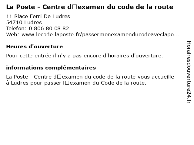 | Appeler La Poste - Centre d’examen du code de la route | |