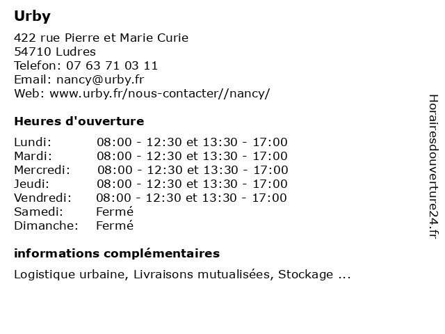 1 Heppner Nancy (Distance: 0,42 km) 1541 Rue Pierre et Marie Curie, 54710 Ludres heppner, logistique, ludres, nancy, service, transport 2 STG Transport (Distance: 0,87 km) 309 Impasse Clément Ader, 54710 Ludres alimentation, logistique, restauration, stg, transport 3 Altéad (Distance: 1,11 km) 320 Impasse Bernard Palissy, 57410 Ludres altead, altéad, bureautique, distribution, emballage, levage, logistique, manutention, transport 4 Adecco (Distance: 3,07 km) 2 Allée des Tilleuls, 54180 Heillecourt adecco, agences, cdd, cdi, emploi, emploi intérim, logistique, services 5 Locabox (Distance: 4,29 km) . Rue Jean Mermoz, 54500 Vandoeuvre les Nancy box, locabox, local, location, stockage 6 Altéad (Distance: 13,19 km) - Lieu dit Champ la chèvre, 54840 Velaine-en-Haye altead, altéad, bureautique, distribution, emballage, levage, logistique, manutention, transport |