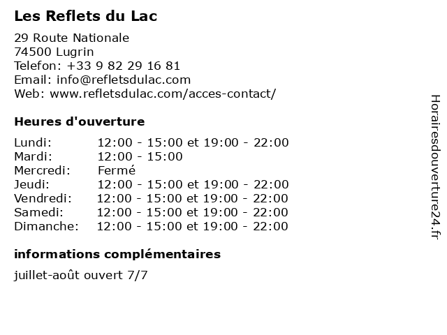 | Dimanche | 12:00-15:00 et 19:00-22:00 |