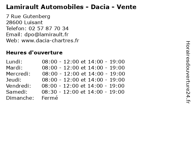 | Samedi | 08:30-12:00 et 14:00-19:00 |