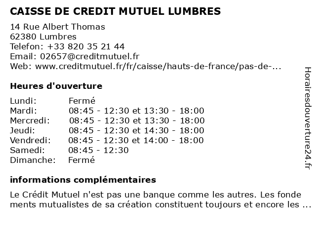 Termes de recherche pour CAISSE DE CREDIT MUTUEL LUMBRES:de, crédit, mutuel, caisse, lumbres |