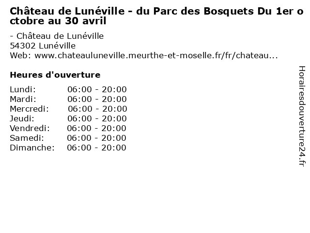 | Lundi | 06:00-20:00 |