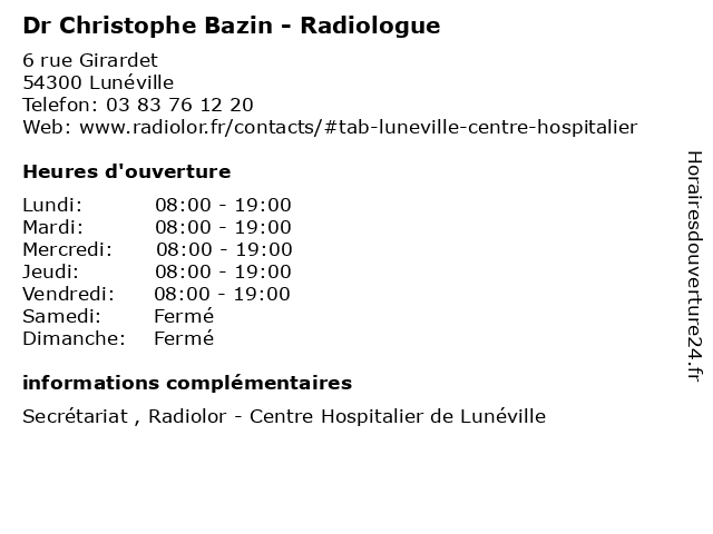 1 Dr Christophe Barbier - Radiologue (Distance: 0,00 km) 6 rue Girardet, 54300 Lunéville barbier, christophe, consultation, docteur, dr, med, médecin, médecine, radiologue, traitement 2 Ohmer Christophe (Distance: 0,76 km) 8 Rue Valentin Jameray Duval, 54300 Luneville christophe, ohmer, restaurants 3 Dr Oriane Bazin - Rhumatologue (Distance: 1,62 km) 26 Rue de la Pologne, 54300 Lunéville bazin, docteur, dr, oriane, rhumatologue, rhume, soin 4 Dr Christophe Pierson - Chirurgien-dentiste (Distance: 8,48 km) 5 Rue de Lorraine, 54360 Damelevières chirurgien, christophe, dentaire, dentiste, dr, implantologie, parodontologie, pierson 5 Medecin Christophe Laine (Médecin généraliste) (Distance: 14,49 km) 30 Rue Anatole France, 54210 Saint-Nicolas-de-Port christophe, docteur, généraliste, laine, medecin, médecin, sante, services 6 Lombard Christophe (Distance: 16,79 km) 11 Rue du Pâquis Halloy, 54210 Ville-en-Vermois christophe, lombard |