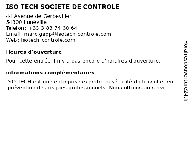 | Appeler ISO TECH SOCIETE DE CONTROLE | |
