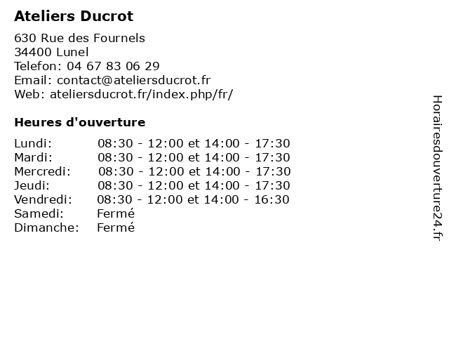| Lundi | 08:30-12:00 et 14:00-17:30 |