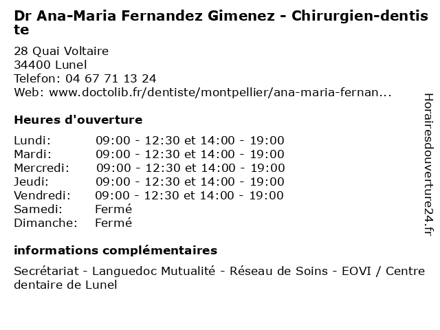 | Lundi | 09:00-12:30 et 14:00-19:00 |