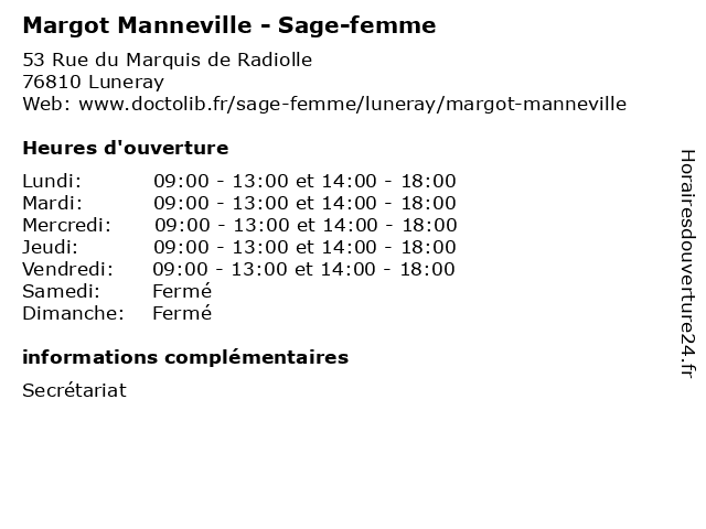 | Mardi | 09:00-13:00 et 14:00-18:00 |