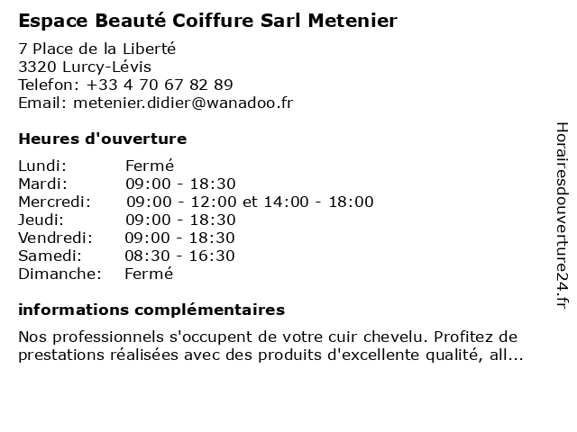 | Lundi | Fermé |