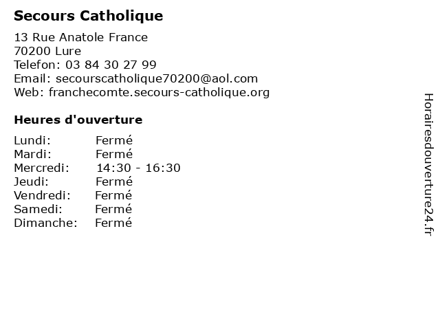 1 Secours Catholique (Distance: 9,28 km) 53 Rue le Corbusier, 70250 Champagney associatif, association, bénévolat, bénévole, catholique, secours, solidaire, solidarité 2 Secours Catholique (Distance: 16,22 km) 12 Rue du Presbytère, 70110 Villersexel associatif, association, bénévolat, bénévole, catholique, secours, solidaire, solidarité 3 Secours Catholique (Distance: 17,45 km) 5 Rue des Ecoles, 70300 Luxeuil associatif, association, bénévolat, bénévole, catholique, secours, solidaire, solidarité 4 Secours Catholique - Boutique Solidaire (Distance: 9,28 km) 53 Rue le Corbusier, 70250 Champagney associatif, association, boutique, bénévolat, bénévole, catholique, secours, solidaire, solidarité 5 Jussieu Secours Ronchamp (Distance: 9,48 km) 20 Rue le Corbusier, 70250 Ronchamp jussieu, ronchamp, secours 6 Jussieu Secours Héricourt (Distance: 14,30 km) 10 Rue du Moulin Brisse, 70400 Granges-le-Bourg héricourt, jussieu, secours |