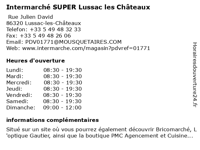 Termes de recherche pour Intermarché SUPER Lussac les Châteaux:les, intermarché, chateaux, lussac, super |