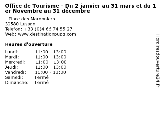| Samedi | Fermé |