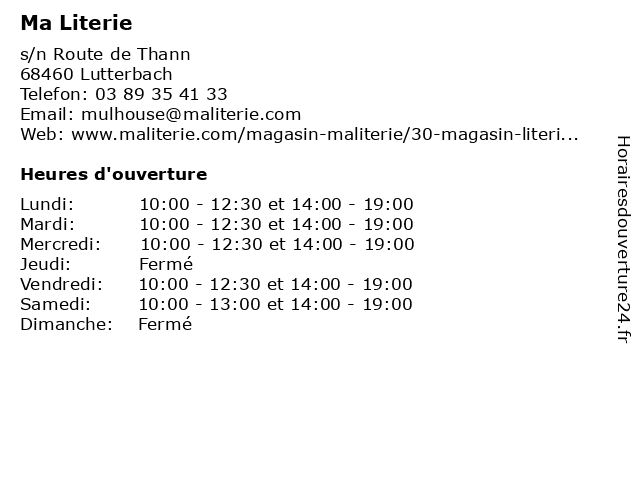 | Mardi | 10:00-12:30 et 14:00-19:00 |