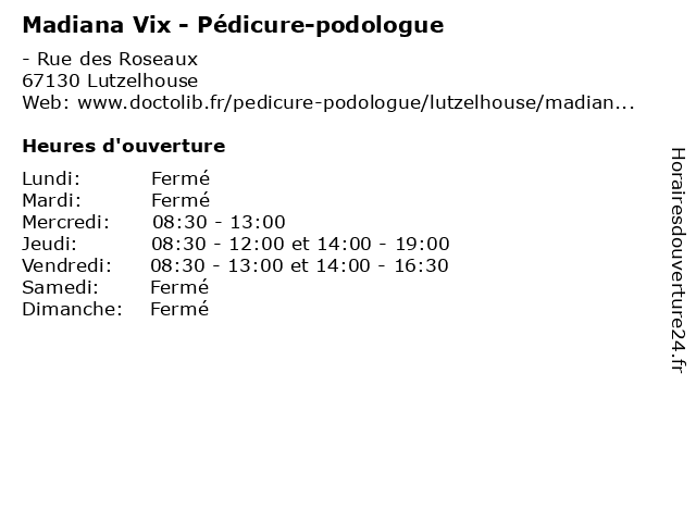 | Jeudi | 08:30-12:00 et 14:00-19:00 |