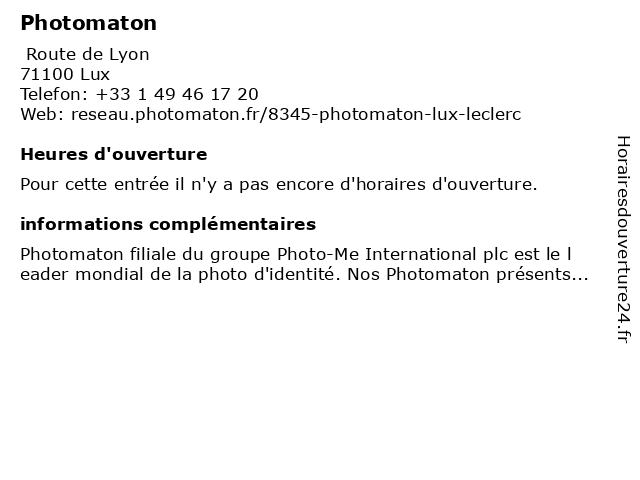 1 Photomaton (Distance: 2,77 km) Rue Thomas Dumorey, 71100 Chalon-sur-Saône photomaton