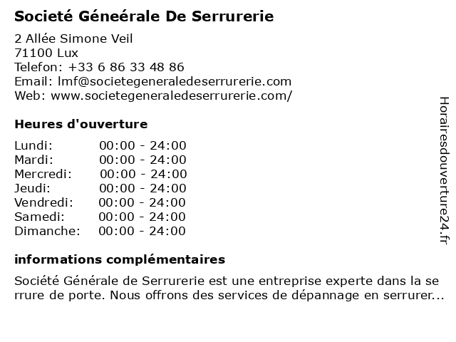 | Lundi | 00:00-24:00 |