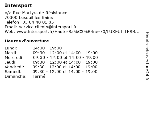 | Mercredi | 09:30-12:00 et 14:00-19:00 |