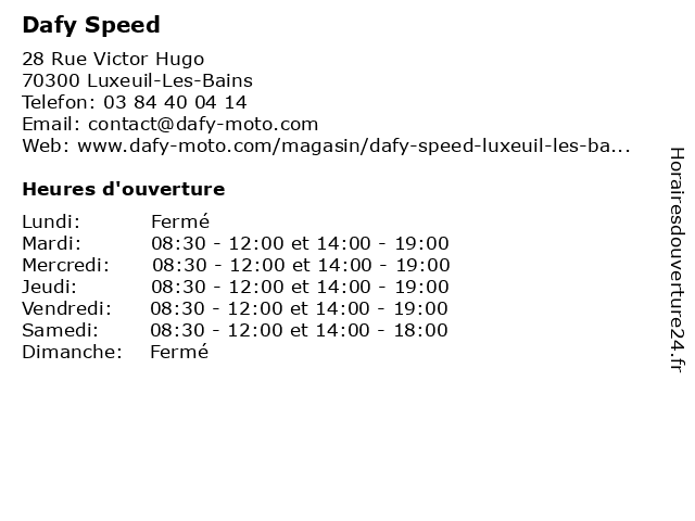 | Mercredi | 08:30-12:00 et 14:00-19:00 |