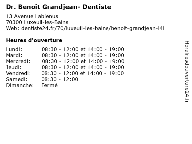| Mercredi | 08:30-12:00 et 14:00-19:00 |