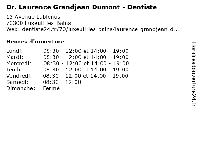 | Lundi | 08:30-12:00 et 14:00-19:00 |