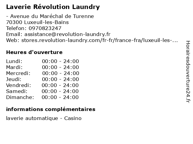 1 Laverie Révolution Laundry (Distance: 1,36 km) 12 Rue de l'étang de la Poche, 70300 Luxeuil-les-Bains automatique, laundry, laverie, linge, nettoyage, révolution 2 Laverie Révolution Laundry (Distance: 8,97 km) - Avenue Jacques Parisot, 70320 Corbenay automatique, laundry, laverie, linge, nettoyage, révolution 3 Laverie Révolution Laundry (Distance: 12,33 km) 1 Avenue Parmentier, 70800 Conflans-sur-Lanterne automatique, laundry, laverie, linge, nettoyage, révolution 4 Laverie Révolution Laundry (Distance: 15,05 km) 22 Rue des Meiges, 88340 Le Val-d'Ajol automatique, laundry, laverie, linge, nettoyage, révolution 5 Laverie Révolution Laundry (Distance: 17,73 km) - Place Maurice Marie Janot, 88370 Plombières-les-Bains automatique, laundry, laverie, linge, nettoyage, révolution 6 Laverie Révolution Laundry (Distance: 18,77 km) 2 Avenue du Maréchal Juin, 70200 Lure automatique, laundry, laverie, linge, nettoyage, révolution |