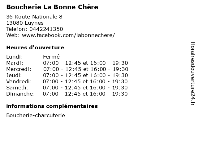 | Lundi | Fermé |