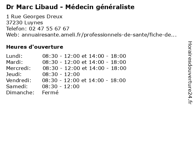 | Lundi | 08:30-12:00 et 14:00-18:00 |