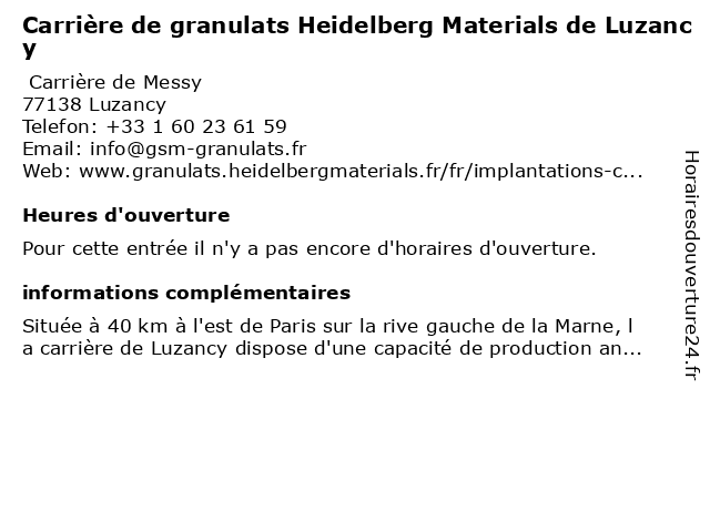 | Appeler Carrière de granulats Heidelberg Materials de Luzancy | |