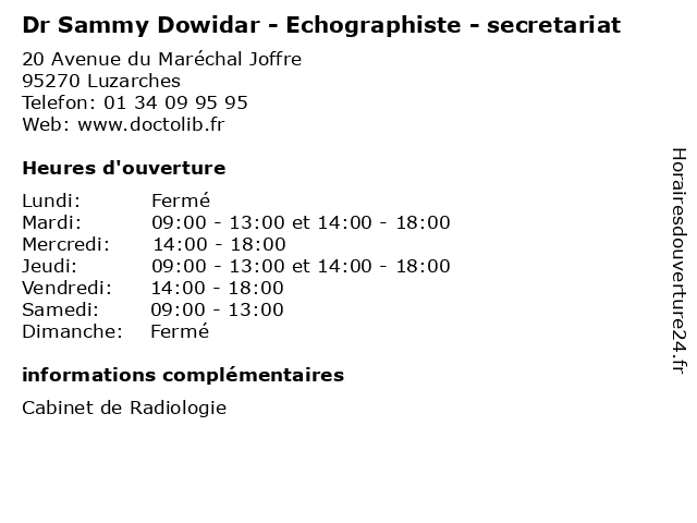 | Mardi | 09:00-13:00 et 14:00-18:00 |