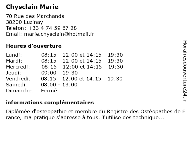 Lundi | 08:15-12:00 et 14:15-19:30 |