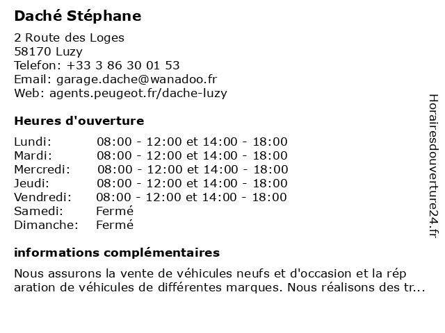 | Lundi | 08:00-12:00 et 14:00-18:00 |
