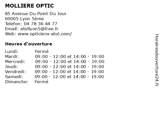 | Samedi | 09:00-12:00 et 14:00-19:00 |