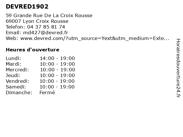 | Mercredi | 10:00-19:00 |