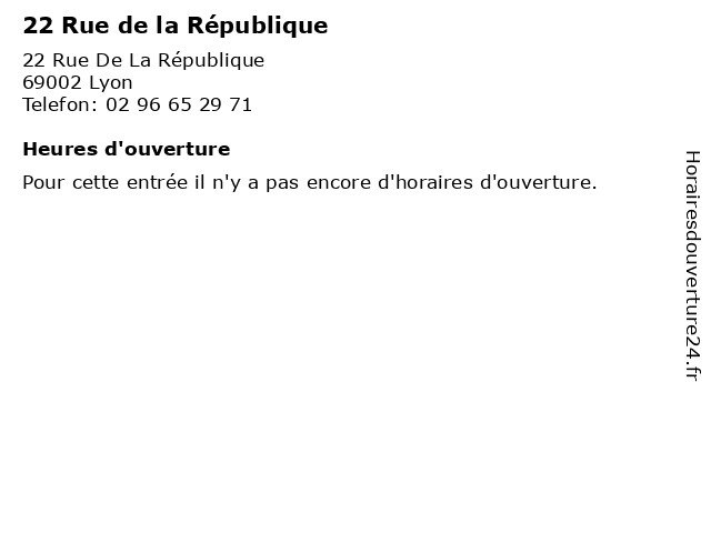 Termes de recherche pour 22 Rue de la République:la, de, rue, republique, 22, conciergerie, notaire, expertise immobiliere, agence spécialisée dans l'immobilier commercial, conseil en construction, service d'investissement, station-service de remorquage, procureur d’appel |