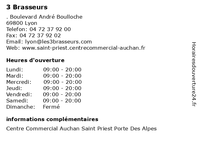 1 Les 3 Brasseurs (Distance: 0,00 km) . ZAC du Champ du Pont, 69800 Lyon alpes, auchan, aushopping, brasseurs, centre, commercial, des, les, lyon, porte, priest, saint 2 Brasserie Les 3 Brasseurs (Distance: 4,48 km) 8 Chemin de Pontet et Crases, 69130 Ecully bar, bistro, bistrot, brasserie, brasseurs, café, les, restaurant, restauration 3 Brasserie Les 3 Brasseurs (Distance: 7,12 km) - rue Simone Veil, 69200 Vénissieux bieres, brasserie, brasseurs, france, les, repas, restaurants, trois 4 Brasserie Les 3 Brasseurs (Distance: 9,63 km) - boulevard André Bouloche, 69800 Saint-Priest bieres, brasserie, brasseurs, france, les, repas, restaurants, trois 5 Les Trois Brasseurs (Distance: 9,76 km) Les 3 Brasseurs Ld Bouchets Lueppes, 69800 Saint Priest brasseurs, lg, restaurants, trois 6 Aubert (Distance: 4,84 km) 6 Avenue du Général de Gaulle, 69410 Champagne Au Mont D Or accesories, aubert, bebe, chambre, deco, mode |