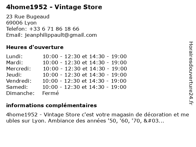 | Samedi | 10:00-12:30 et 14:30-19:00 |