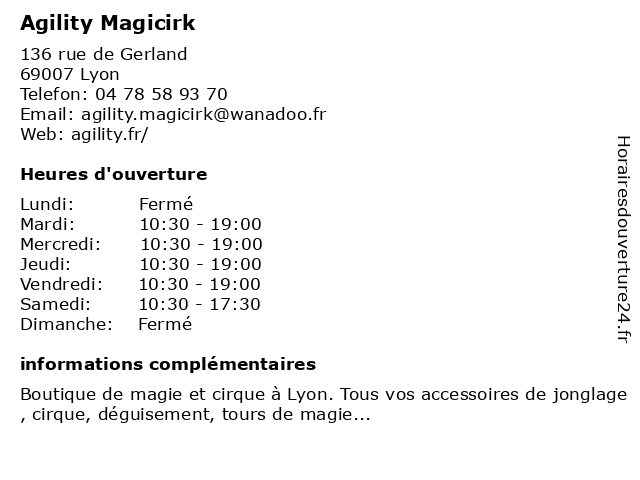 | Lundi | Fermé |