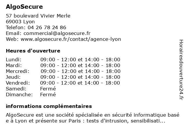 | Lundi | 09:00-12:00 et 14:00-18:00 |