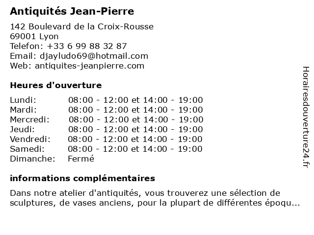 Lundi | 08:00-12:00 et 14:00-19:00 |