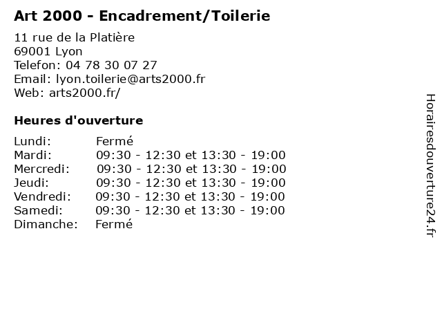 | Samedi | 09:30-12:30 et 13:30-19:00 |