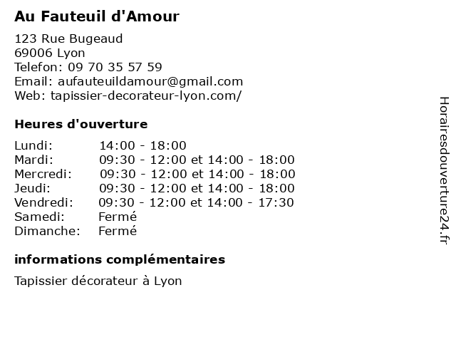 1 Amour Floral (Distance: 1,13 km) 102 avenue marechal de saxe, 69003 Lyon amour, fleurs, fleurs et cadeaux, floral 3 Le Fauteuil à Oreilles (Distance: 2,24 km) 28 Rue Elie Rochette, 69007 Lyon décoration, fauteuil, le, oreilles, réalisations, tapisserie 5 Cler Amour et Famille Ségolène Rouche (Distance: 6,93 km) 68 Rue Claude Michel, 69600 Oullins amour, cler, et, famille, rouche, ségolène 6 |