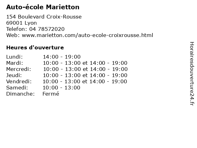 | Mardi | 10:00-13:00 et 14:00-19:00 |