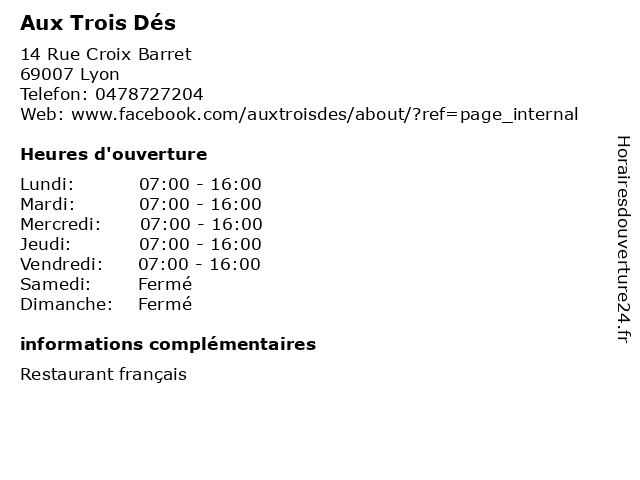Termes de recherche pour Aux Trois Dés:restauration, restaurant, café, bar, aux, trois, des, bistrot, brasserie, pub, resto, bistro |