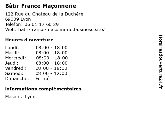 | Lundi | 08:00-18:00 |