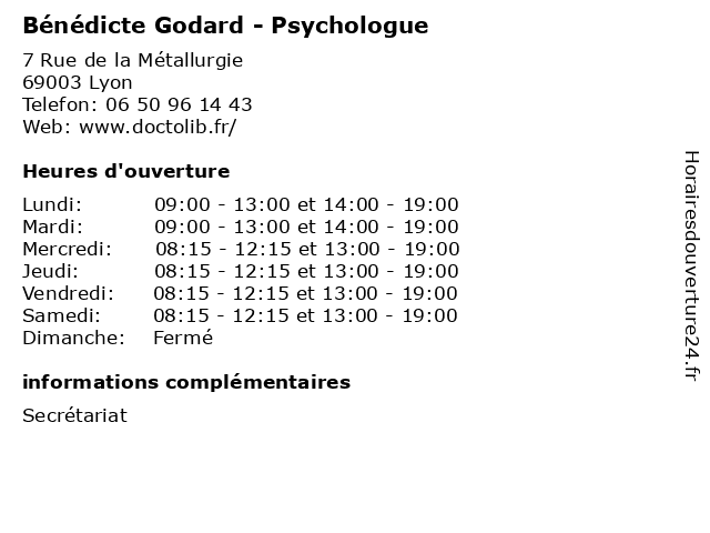| Lundi | 09:00-13:00 et 14:00-19:00 |