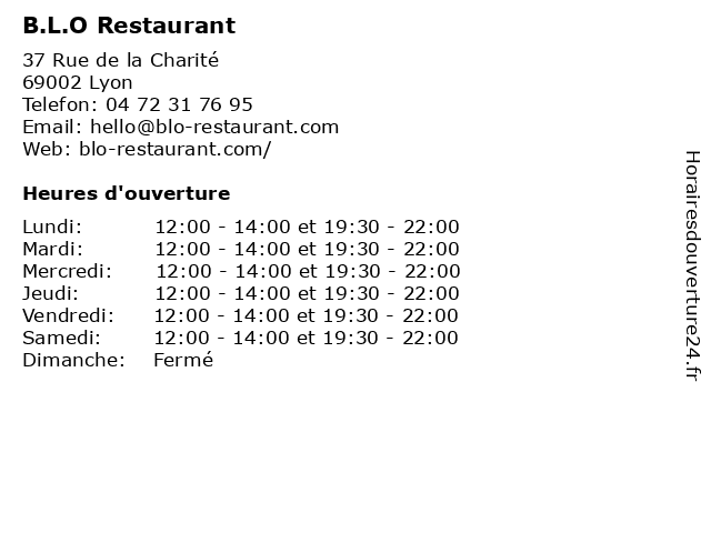 | Mardi | 12:00-14:00 et 19:30-22:00 |