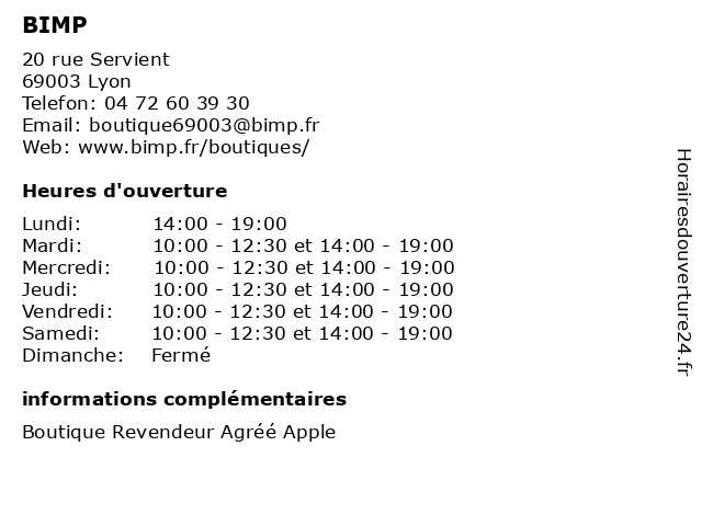 | Mercredi | 10:00-12:30 et 14:00-19:00 |