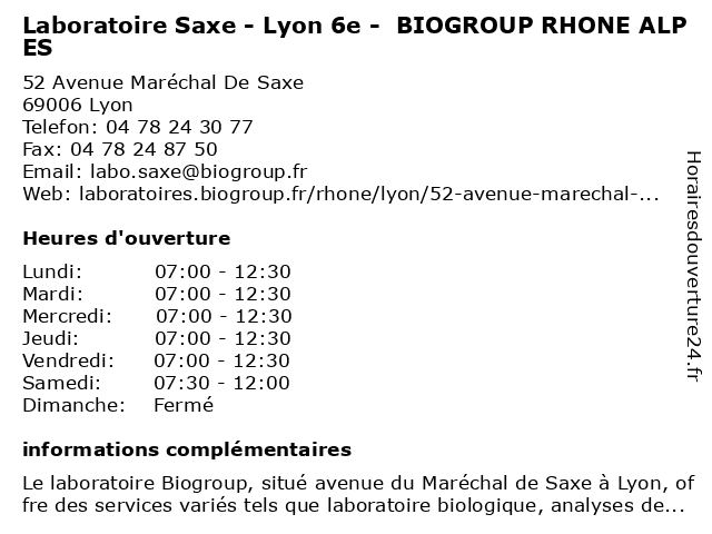 Termes de recherche pour Laboratoire Saxe - Lyon 6e - BIOGROUP RHONE ALPES:lyon, laboratoire, alpes, rhone, saxe, 6e, biogroup, dépistages, laboratoire de diagnostic |