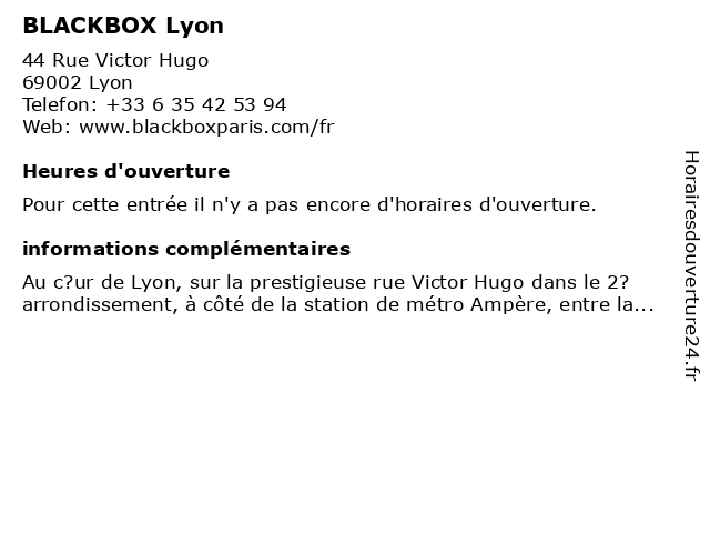 Au c?ur de Lyon, sur la prestigieuse rue Victor Hugo dans le 2? arrondissement, à côté de la station de métro Ampère, entre la gare Perrache et la place Bellecour, un nouveau BLACKBOX si...
