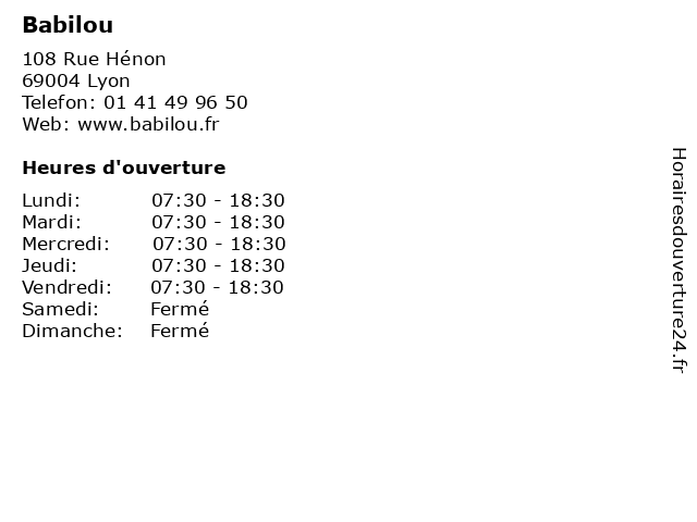 1 Babilou (Distance: 1,53 km) 23B Rue de l’Oratoire, 69300 Caluire et Cuire babilou, babysitting, crèches, garde d'enfants 2 Babilou (Distance: 1,88 km) 41 Rue Louis Bouquet, 69009 Lyon babilou, babysitting, crèches, garde d'enfants 3 Babilou (Distance: 2,88 km) 27 Rue Louis Blanc, 69006 Lyon babilou, babysitting, crèches, garde d'enfants 4 Babilou (Distance: 3,10 km) 100 Cours Lafayette, 69003 Lyon babilou, babysitting, crèches, garde d'enfants 5 6 Babilou (Distance: 3,52 km) 24 Chemin Charrière Blanche, 69130 Ecully babilou, babysitting, crèches, garde d'enfants |