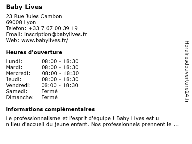 1 Baby City (Distance: 1,24 km) 5 rue Professeur Tavernier, 69008 Lyon baby, city, divers, détail, magasins, nra, petits, royaume 2 Multi-accueil Baby Nursery (Distance: 2,03 km) 22 Avenue Rockefeller, 69008 Lyon accueil, baby, caregivers houses, child care, family home, home care, kindergartens, micro-nurseries, multi, nursery, parental home 3 Crèche People & Baby - Babycina (Distance: 2,17 km) 64 avenue Rockefeller, 69008 Lyon baby, babycina, creche, crèche, enfant, garderie, people, éveil 4 Crèche People and Baby - La Maison Des Chatons Gratte Ciel (Distance: 4,61 km) 59 Rue Paul Verlaine, 69100 Villeurbanne and, baby, chatons, ciel, crèche, crèches, des, garde d'enfants, gratte, la, les services parentalité, maison, people, projet social, projet éducatif 5 Baby Nemo (Distance: 5,00 km) 61 Rue Magenta, 69100 Villeurbanne baby, caregivers houses, child care, family home, home care, kindergartens, micro-nurseries, nemo, parental home 6 Gym Sports Loisirs - Baby judo (Distance: 5,32 km) 28 Cours Lafayette, 69003 Lyon baby, centre, cours, gym, judo, l'exercice, loisirs, muscles, salles, santé, sport, sports |